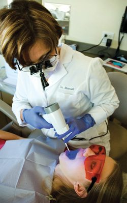 A new tool to help detect abnormalities in gum tissue may soon become part of the arsenal to detect oral cancer, and already is being used by a few dentists in the Valley. The VELscope looks like a skinny white showerhead that shines a blue light on gum tissue. “If there are any abnormalities in the tissue, they turn a dark maroon color,” says Patty Bisig, R.N.