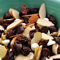 Make your own trail mix with almonds, raisins, yogurt chips, dark chocolate chips…or whatever crunchy/salty/sweet mix your family enjoys!