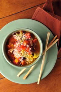 This is a hybrid soup — originally inspired by a minestrone soup recipe in Cooking Light magazine but modified many times over the years. The barley makes it a bit heartier than traditional minestrone; it stands in quite well for a main dish.