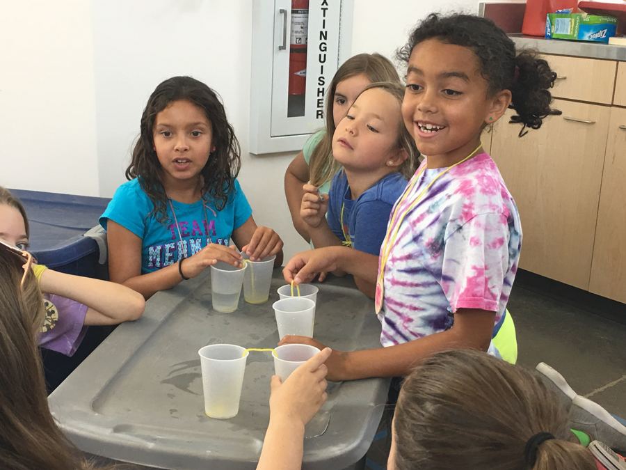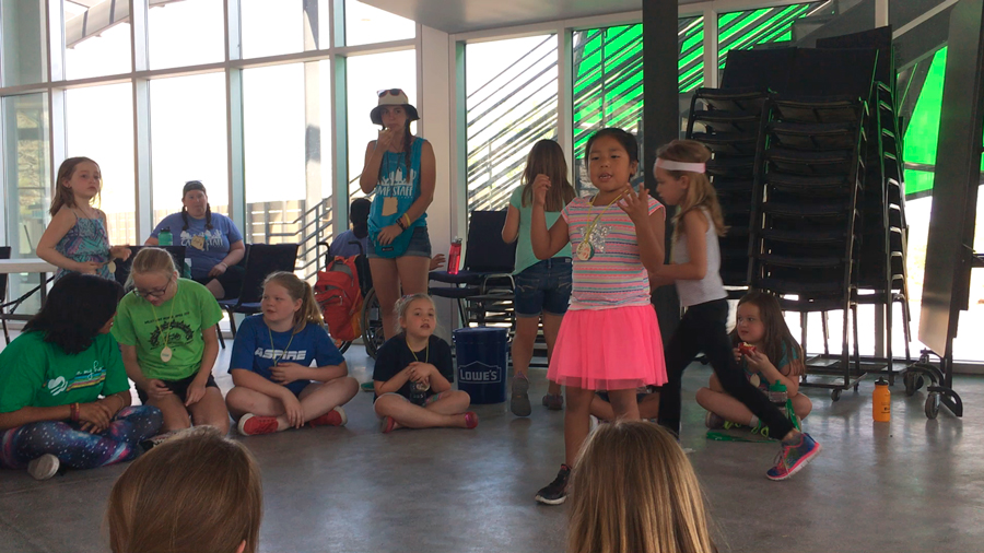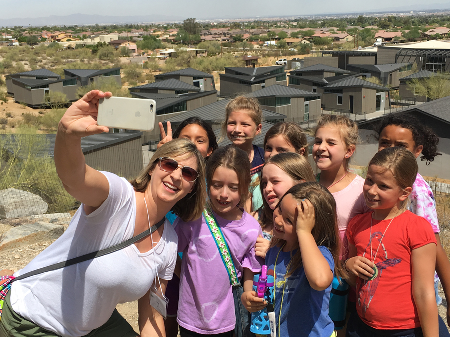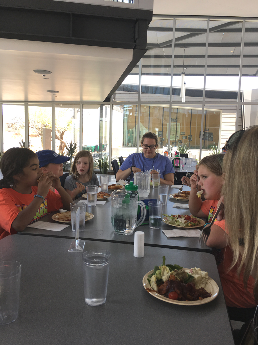 After our STEM project, it was time to stretch our legs and take a short nature hike. We walked up a small pathway that overlooked the entire camp and included a beautiful view of Phoenix that was very similar to the mural we had just created. We also stopped to smell and learn about the creosote (a desert shrub with a powerful scent after it rains). When we reached the top of the small cliff, Terk sang a short, silly song about socks! Campers knew just want to do while she sang: they drank water for the duration of her ditty. This was a routine performed throughout the day to make sure campers were staying hydrated in the desert heat.