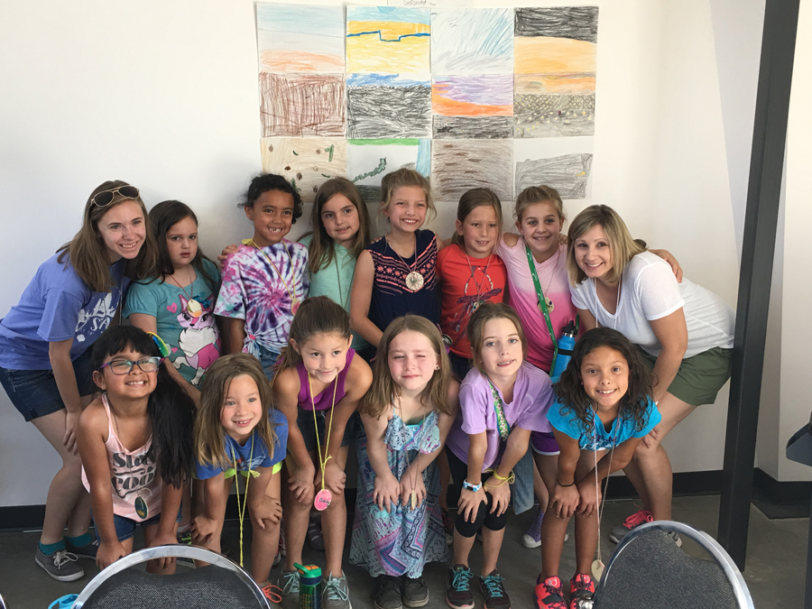 First on our itinerary was an art explosion project in the STEM classroom. We broke down a beautiful photo of Phoenix’s skyline and recreated it into a beautiful mural. The counselor divided the photo into a grid that included 12 small squares. There were 13 girls in our group (ahem, thanks to me), so there were not enough squares to go around. The organization emphasizes girl-lead activities where adults step aside to allow children to problem-solve. It did not take this Brownie group long to decide to team up on a few of the squares and work together so nobody would be left out. The girls enjoyed seeing the different ways we colored the mountains and sunset and really took pride in seeing our masterpiece completed.