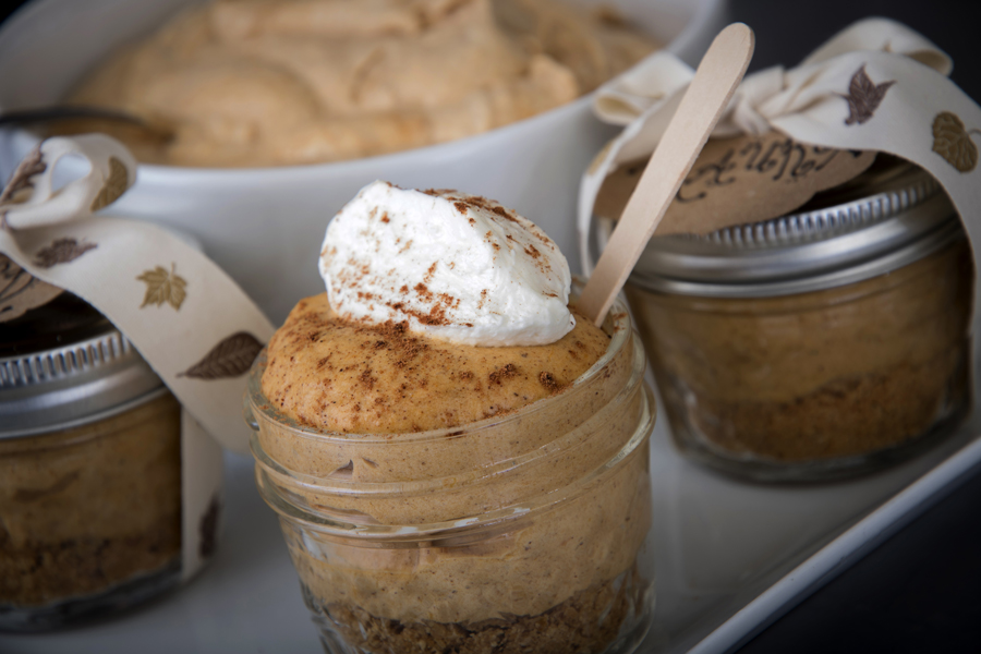 The mousse can be topped with a simple sprinkle of pumpkin pie spice or fresh whipped cream. Serves 8.