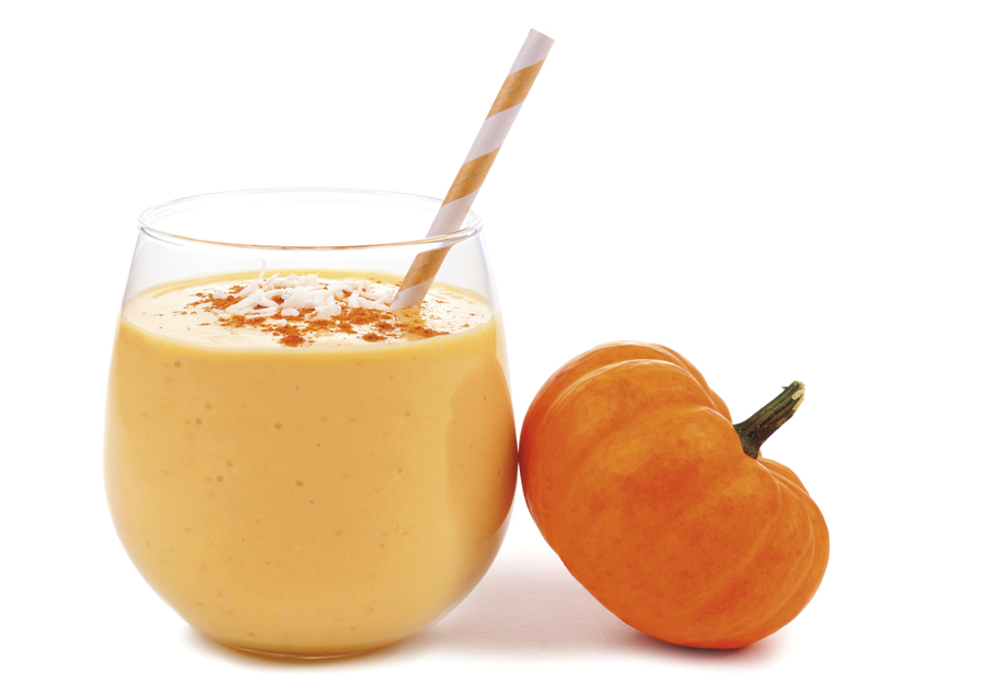 Pumpkin smoothie: Combine 1 cup pumpkin puree, 1 large ripe banana, 1 cup unsweetened soy or coconut milk, 1 tablespoon honey, ½ teaspoon pure vanilla extract, 1¼ teaspoon pumpkin spice and 4-5 ice cubes (optional) in a blender. Blend until smooth. Makes 2 smoothies.