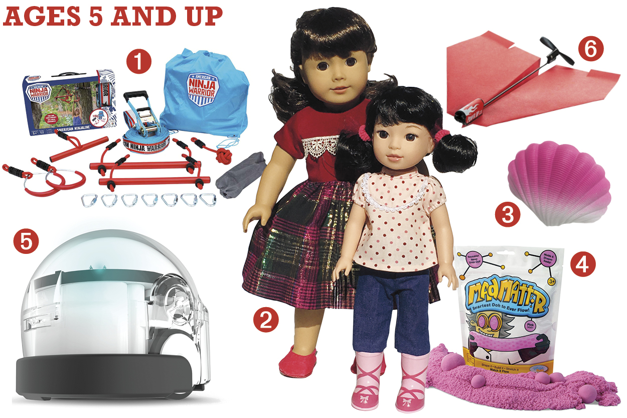 ➊ American Ninja Warrior Ninjaline. Hang this 34-foot Ninjaline between two trees, and you have an instant challenging obstacle course! Comes with rope knot, T-bar, monkey bars and rings. Recommended for ages 5-12. $129.99 at Kidstop Toys in Scottsdale.