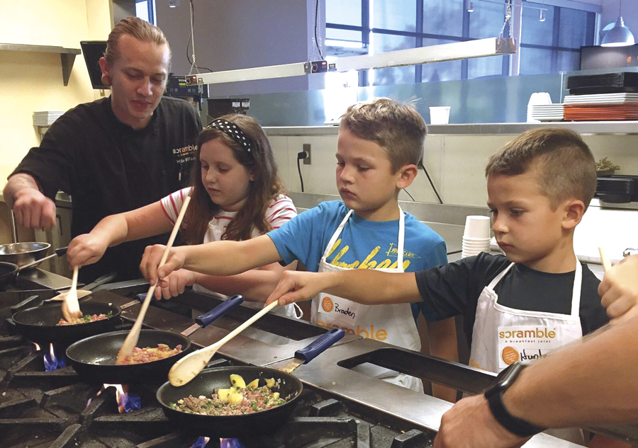 “Eggs are a blank canvas, a starting point for so many different meals and a good ingredient for kids just learning to cook,” says Mike Williams, Scramble culinary director, who teaches quarterly kids cooking classes.
