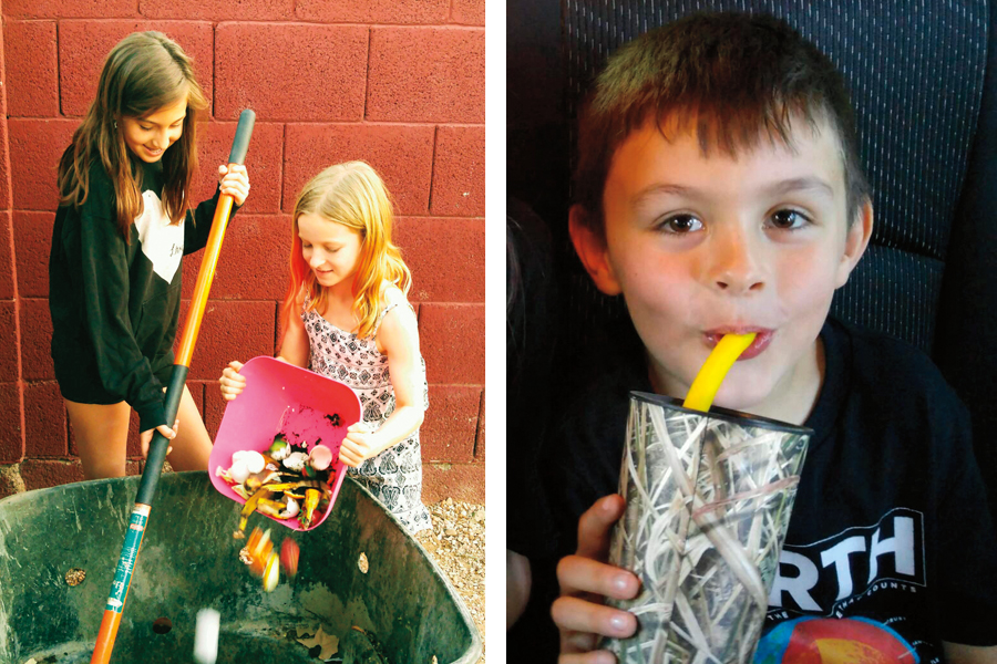 The first time I asked a convenience store worker if I could use my recyclable cup at the soda machine, he looked at me a little sideways, but ultimately said it was fine. Styrofoam is not biodegradable, and it never goes away. Just avoid it. Do the same with single-use plastic water bottles. Give kids their own refillable bottle, and they will learn responsibility in more ways than one.