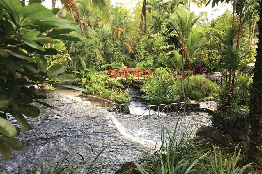 We ended our trip at Tabacon Resort, a half-hour drive from the eco-lodge. Tabacon is known for its labyrinth of thermal hot springs, heated from the Arenal Volcano, of which we had an amazing view from our room. The restaurant was incredible — with steaks you sizzle on your own lava rock and Instagram-worthy desserts. The hot springs are a five-minute walk from the resort.
