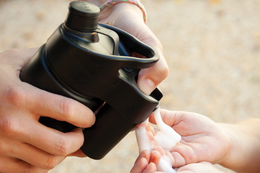 Suds2Go — a dual-purpose water bottle for handwashing on the go — was invented by a Gilbert dad during a bad flu season. Gabe Trevizo, an ASU alum, said with four active children under age 8, he and his wife Cindy “quickly realized that something as simple as washing hands when away from home, getting hands truly clean, can be a major challenge.”