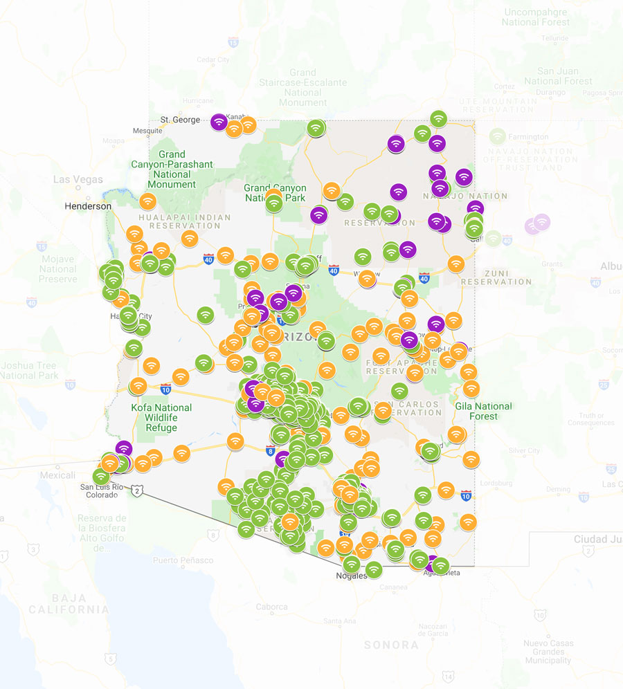 Connect Arizona Wi-Fi. In collaboration with the Arizona State Library, School Connect, Common Sense Media the Commerce Authority and the Arizona Broadband Stakeholder Network, this website — connect-arizona.com — provides an interactive map of Free Wi-Fi spots across the state.