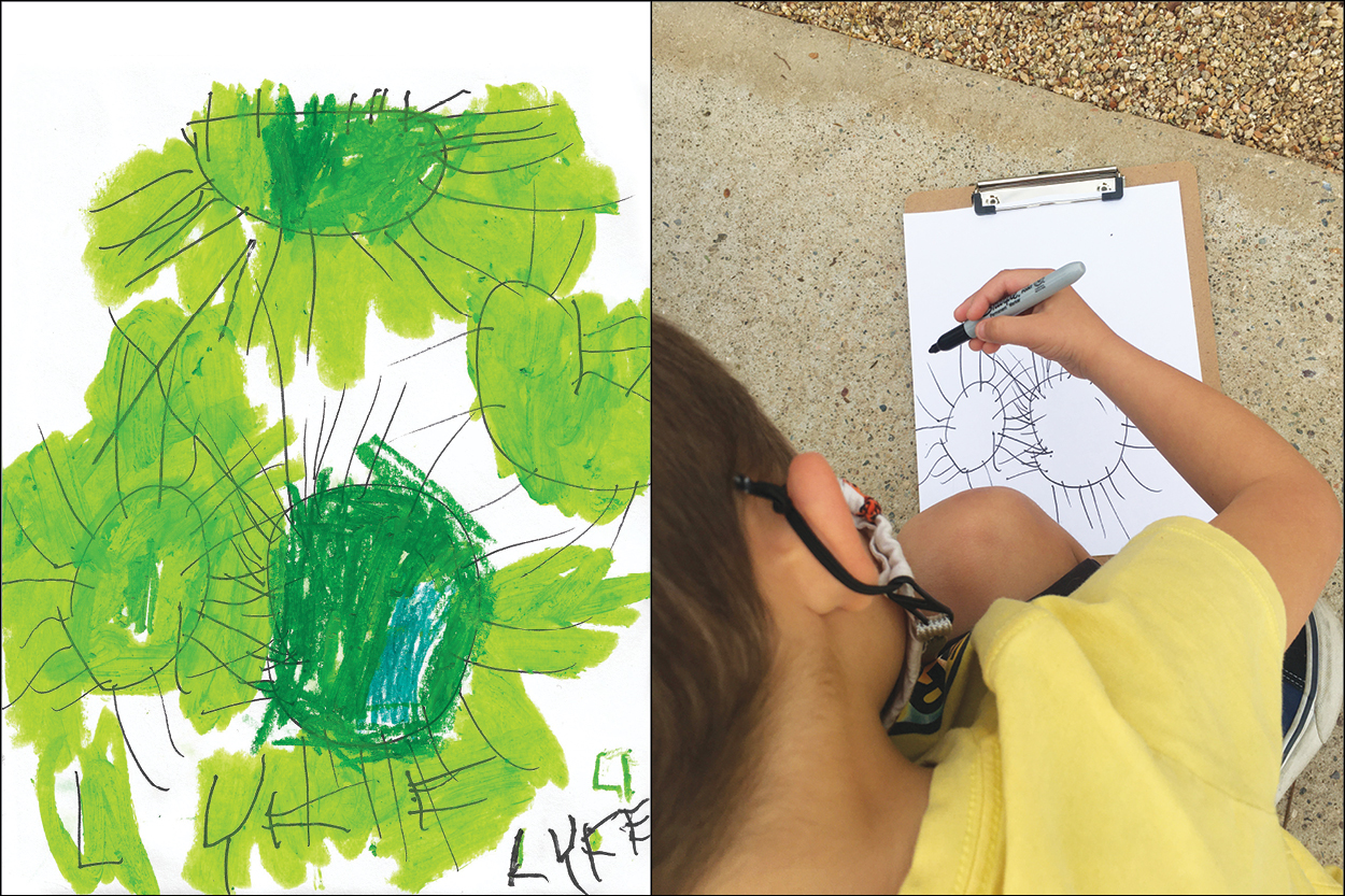For Jonathan, who also was drawing the saguaro, the needles were the most important part. Over the following weeks, his interest continued and he drew many versions of the cactus.