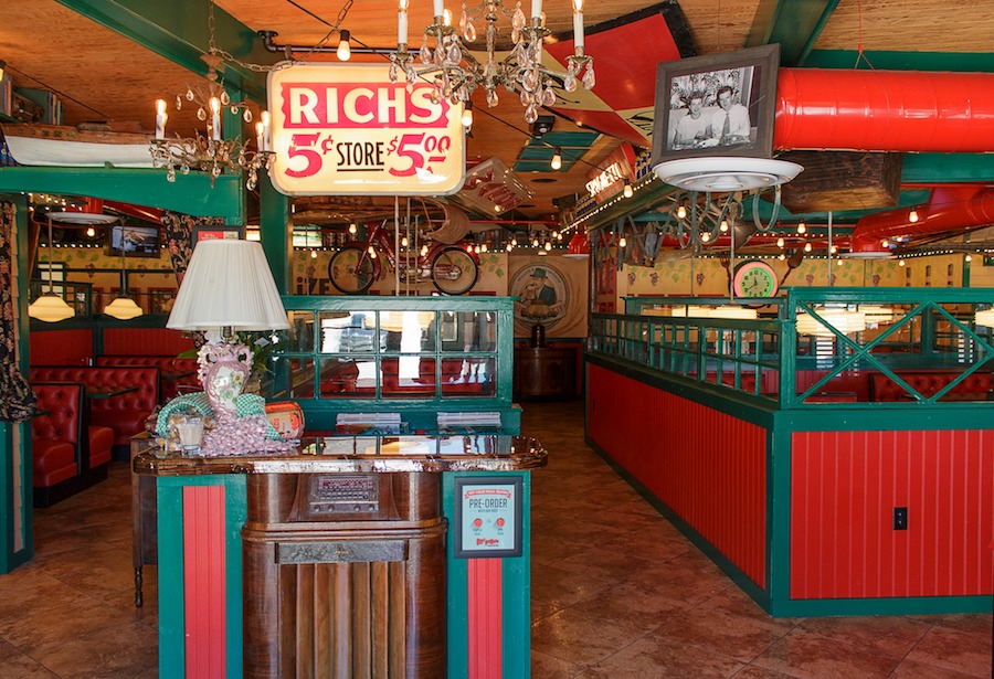 Upon walking in my 8 year old said he felt like we went back in time (and that it smelled delicious!). Despite not being around in the 1950s the restaurant’s vintage theme felt oddly nostalgic to me–as if you were entering into your Nonna’s kitchen for a weekly family dinner. We found out while there that each restaurant is styled similarly with the same colors and theme but the antiques and decor are unique! I love browsing antique stores so maybe that’s why it felt so familiar.