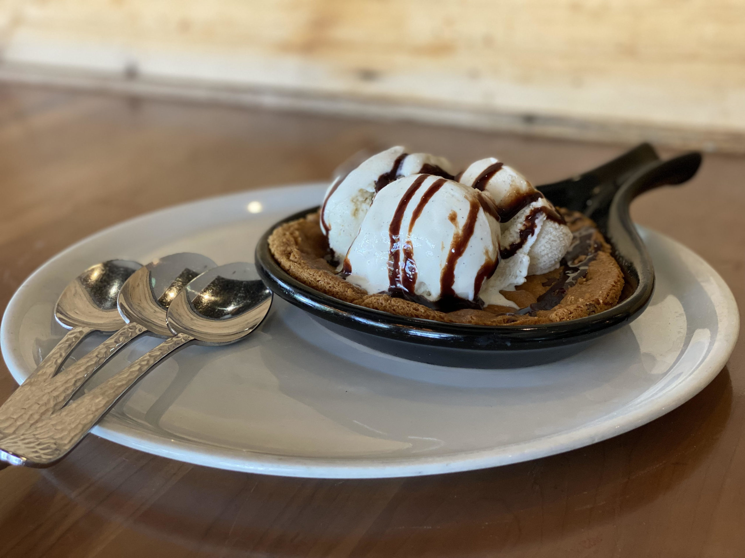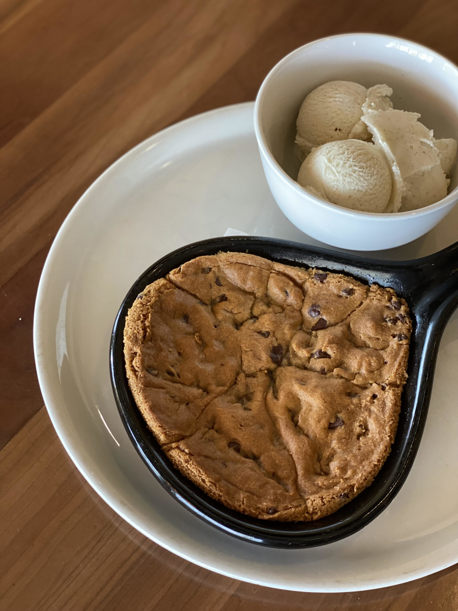 This popular Picazzo’s dessert is no ordinary chocolate chip cookie. It is served warm in a skillet and topped with premium local-made vanilla bean gelato or coconut ice cream and drizzled with a choice of organic chocolate, raspberry, or salted caramel sauce. The dessert is gluten-free and dairy-free, with the exception of the vanilla bean gelato.