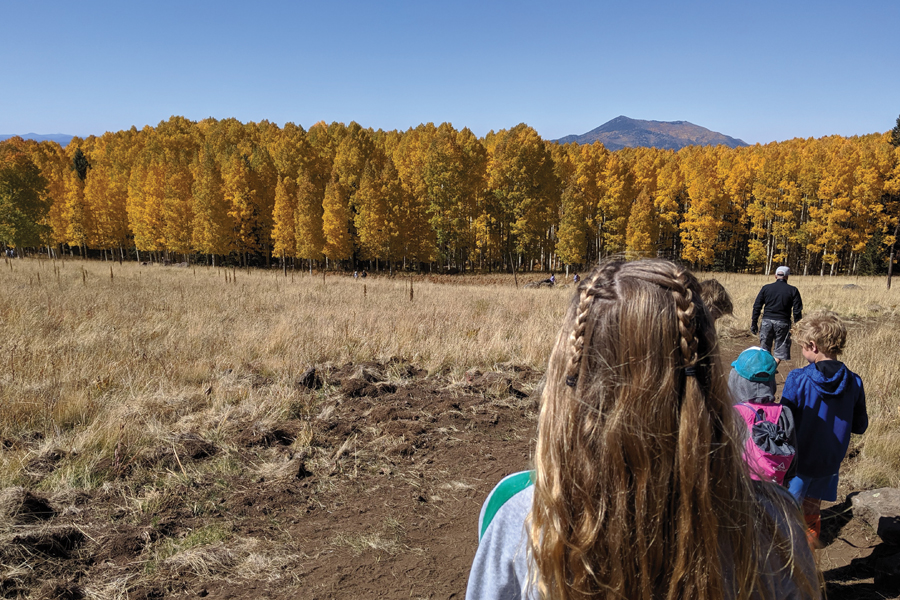 The showstopper for us is the aspen trees. In the fall, aspens turn from green to gold, creating a canopy of color that has to be seen. There are a number of places to see clusters of aspen, but for accessibility, Flagstaff’s Arizona Snowbowl was easy for us and the dogs. I’m pretty sure all the kids gasped when the trail we were on wound itself toward a cluster of golden aspen. They had no idea what to expect and that collection of golden leaves left them a bit awestruck.