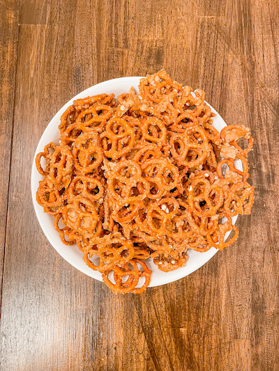 If you’re like me you probably spend a lot of the holiday season baking…and eating. These pretzels are a family favorite and we love making batches for friends because they store well and look pretty in the metal gift tins! They’re sweet, salty, crunchy….and addictive. It definitely checks all of my boxes for holiday treats. If you have to attend a gathering and need an idea of what to bring this recipe won’t disappoint. Just make sure to make a batch for yourself!