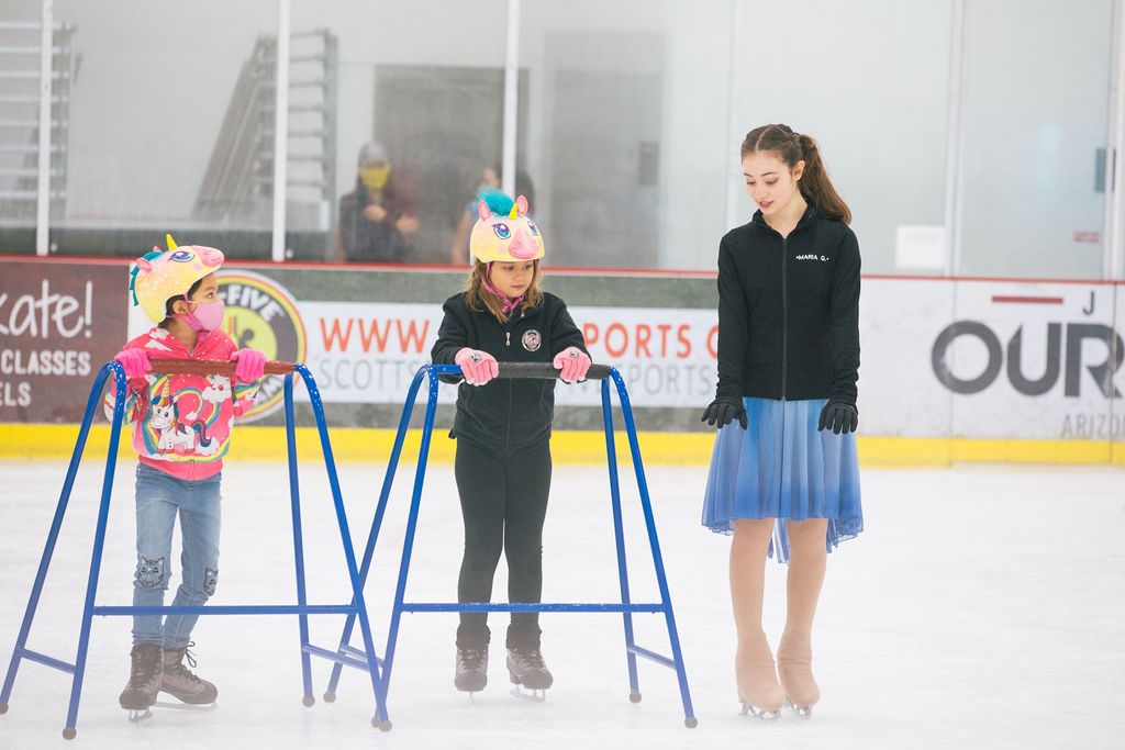 The first part of Gonzalez’s efforts to address this issue were through her Skate for Fitness instructional event at Ice Den Chandler, a place she frequents regularly for practice. The event started with a free 20-minute lesson where almost 70 children were able to learn the basics of figure skating like how to start and stop on skates.