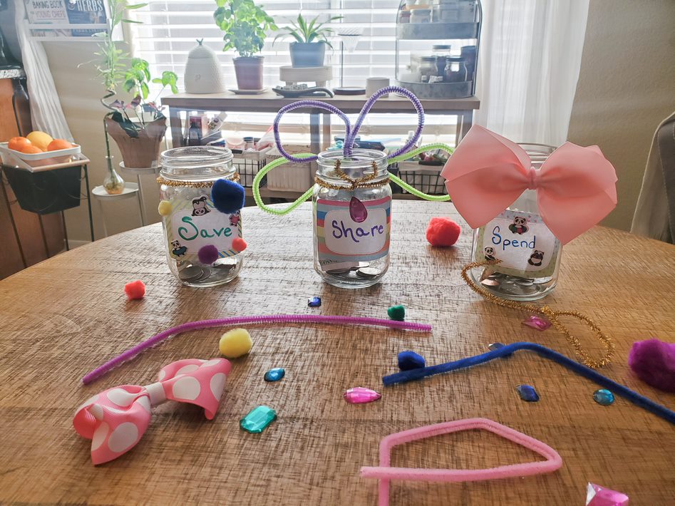 Watch savings add up with spend, save, and share money jars