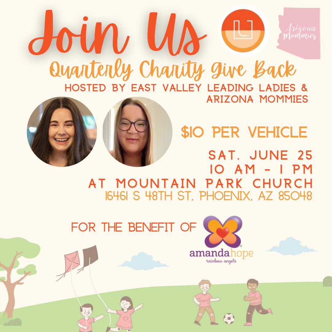 East Valley Leading Ladies and Arizona Mommies are teaming up with over 20 local businesses to host a family fun charity giveback event on June 25 for the benefit of local non-profit Amanda Hope Rainbow Angels.Â