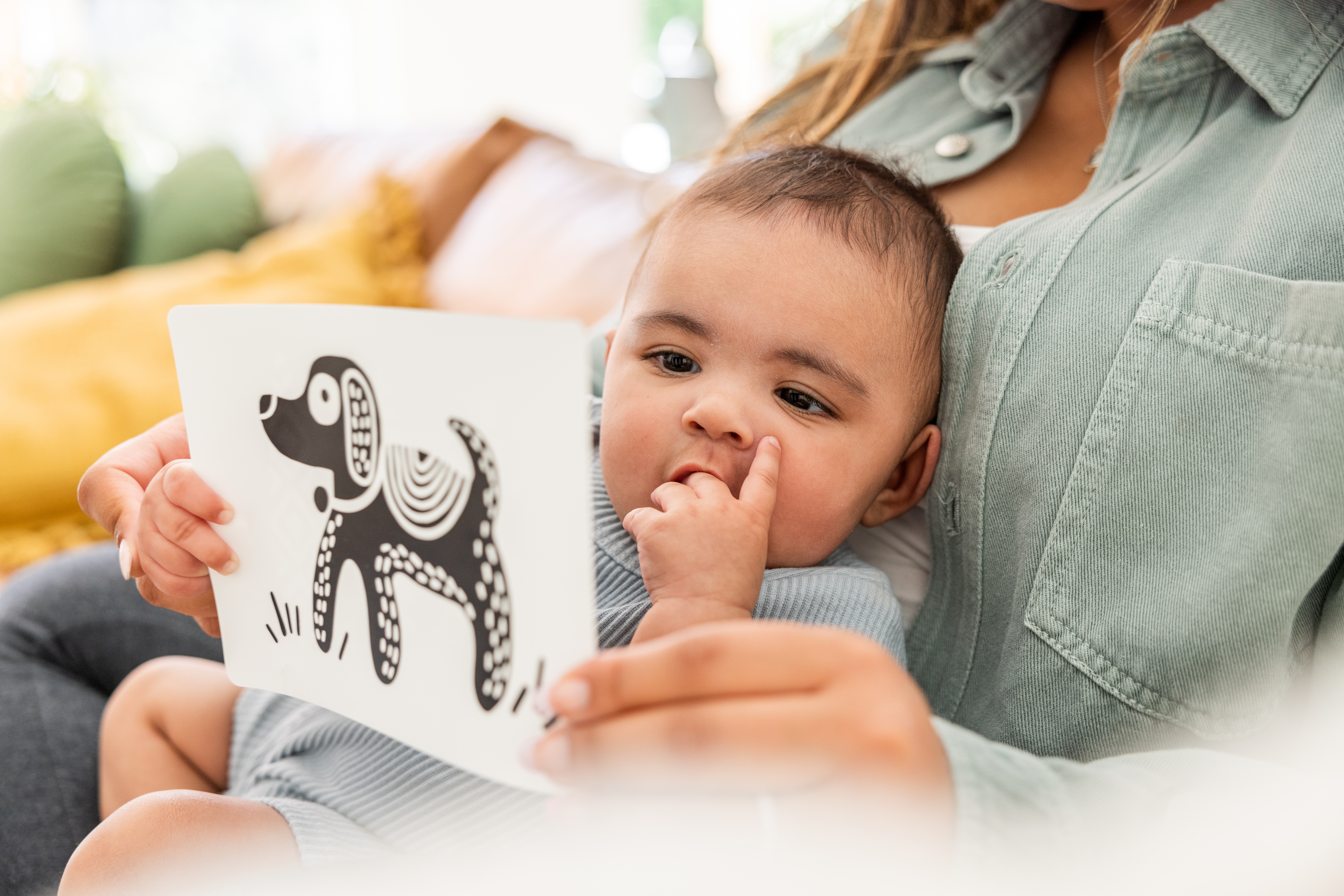 Carter, my 3-month-old, loves all the high-contrast black and white images that came inside both kits. The standing card holder has made it super convenient for tummy-time or folding up to put inside our diaper bag when we go out.