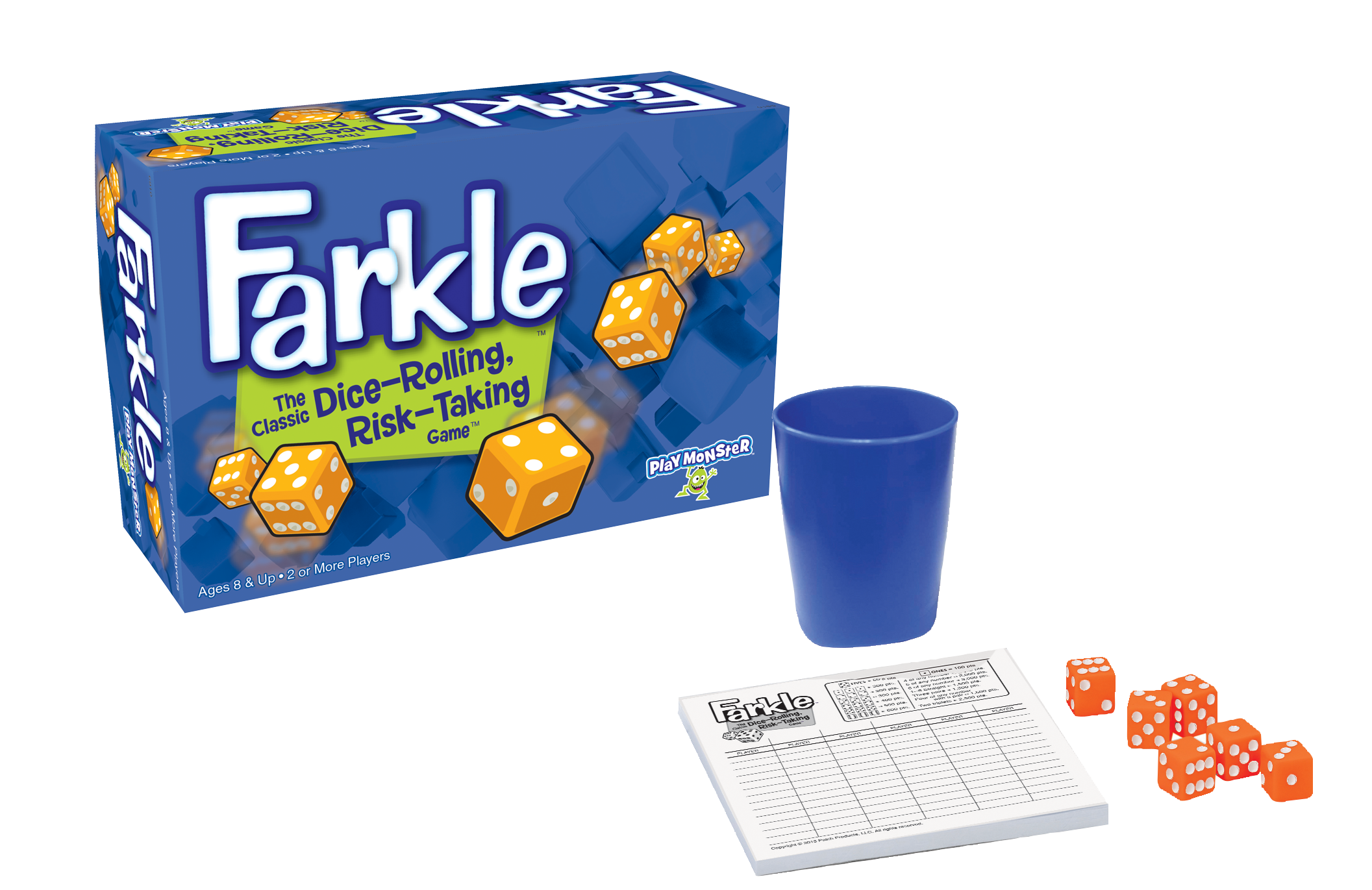 Become a Farkle fanatic with this classic dice-rolling, risk-taking game™. Take a risk, and keep rolling to build your score. Or play it safe so you don’t lose your points in a Farkle. It’s a fight to the finish in this fabulously fun game of strategy and luck! For two or more players.
