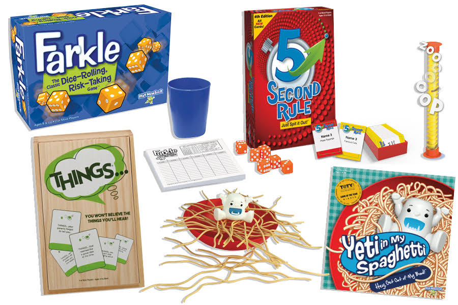 In this wacky, fun game, the noodles are laid across the bowl and the yeti sits there on the noodles…but as you try to carefully remove the noodles one by one, but don’t let the yeti fall into the bowl or you’ll lose!