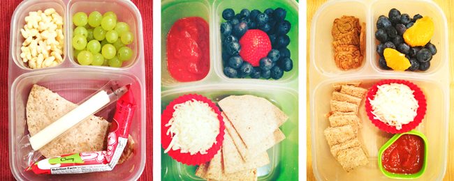 - Pizza bento: 100 percent whole-wheat sandwich thins cut into wedges, served separately with pasta sauce and shredded part-skim mozzarella cheese.