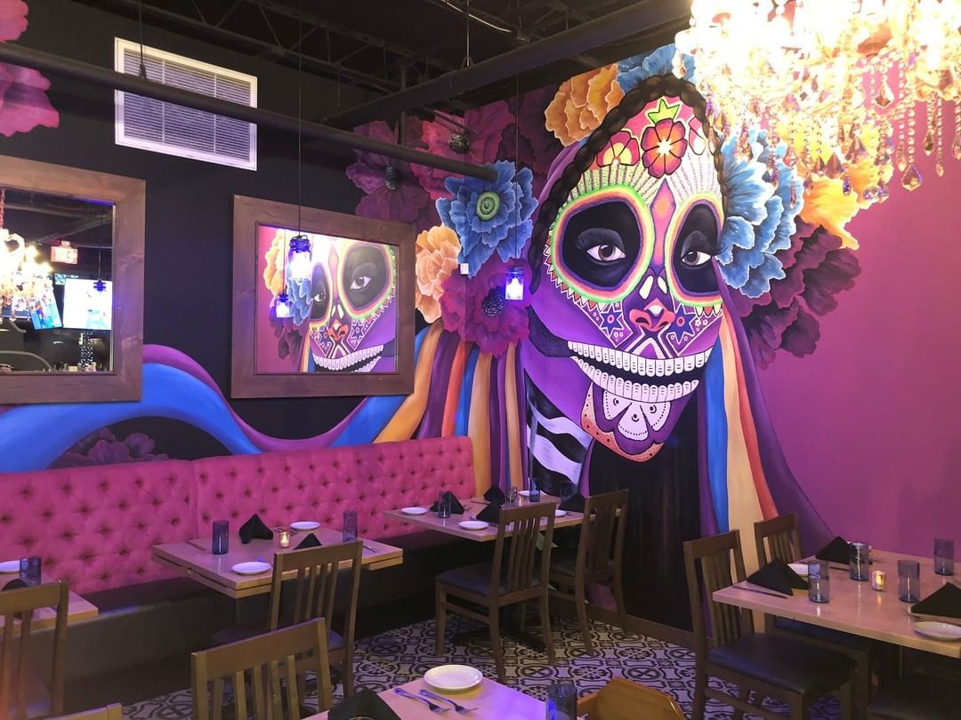 Inside you’ll find modern, chic décor featuring tequila display cases and beautiful Mexican murals, while the outside hosts a large patio space, so that no matter where you’re seated, you’ll enjoy the atmosphere.