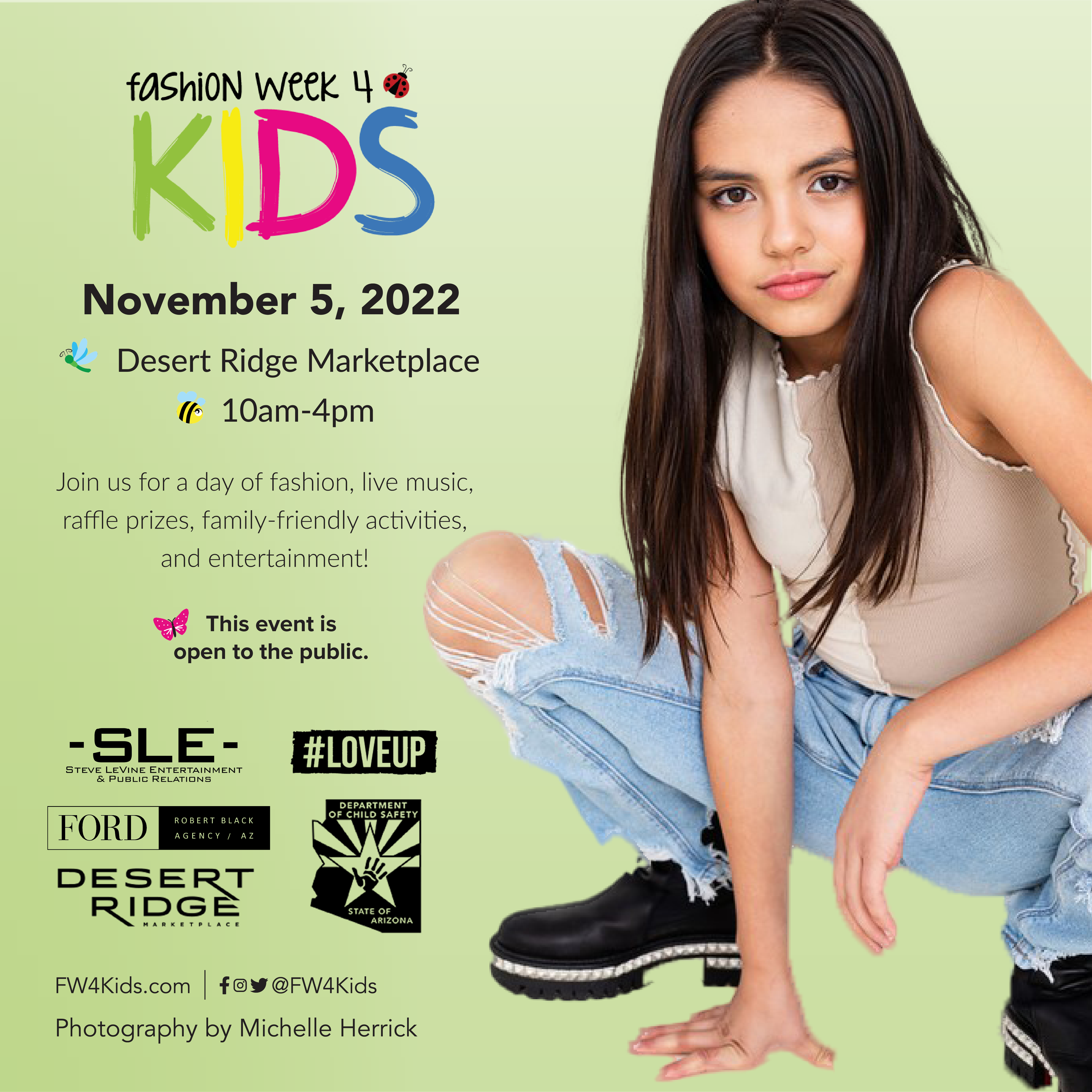The event will take place on Saturday, Nov. 5 from 10 a.m. to 4 p.m. at Desert Ridge Marketplace. For more information on the fashion show schedule, please visit FW4Kids.com.