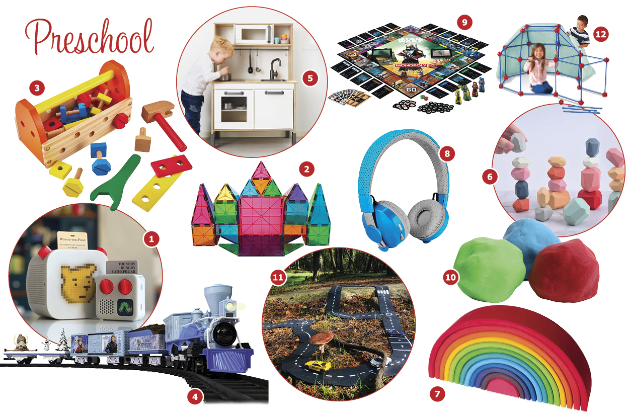 My preschooler isn’t too hard to please when it comes to toys but we try really hard to gift items that encourage open-ended play. And we love toys that work together and foster a sense of imagination! Some of his favorites are magnetic tiles, Lincoln Logs, Legos, building blocks, and stacking toys. Our house is limited on space so we also try to find gifts that store neatly in bins or on shelves.
