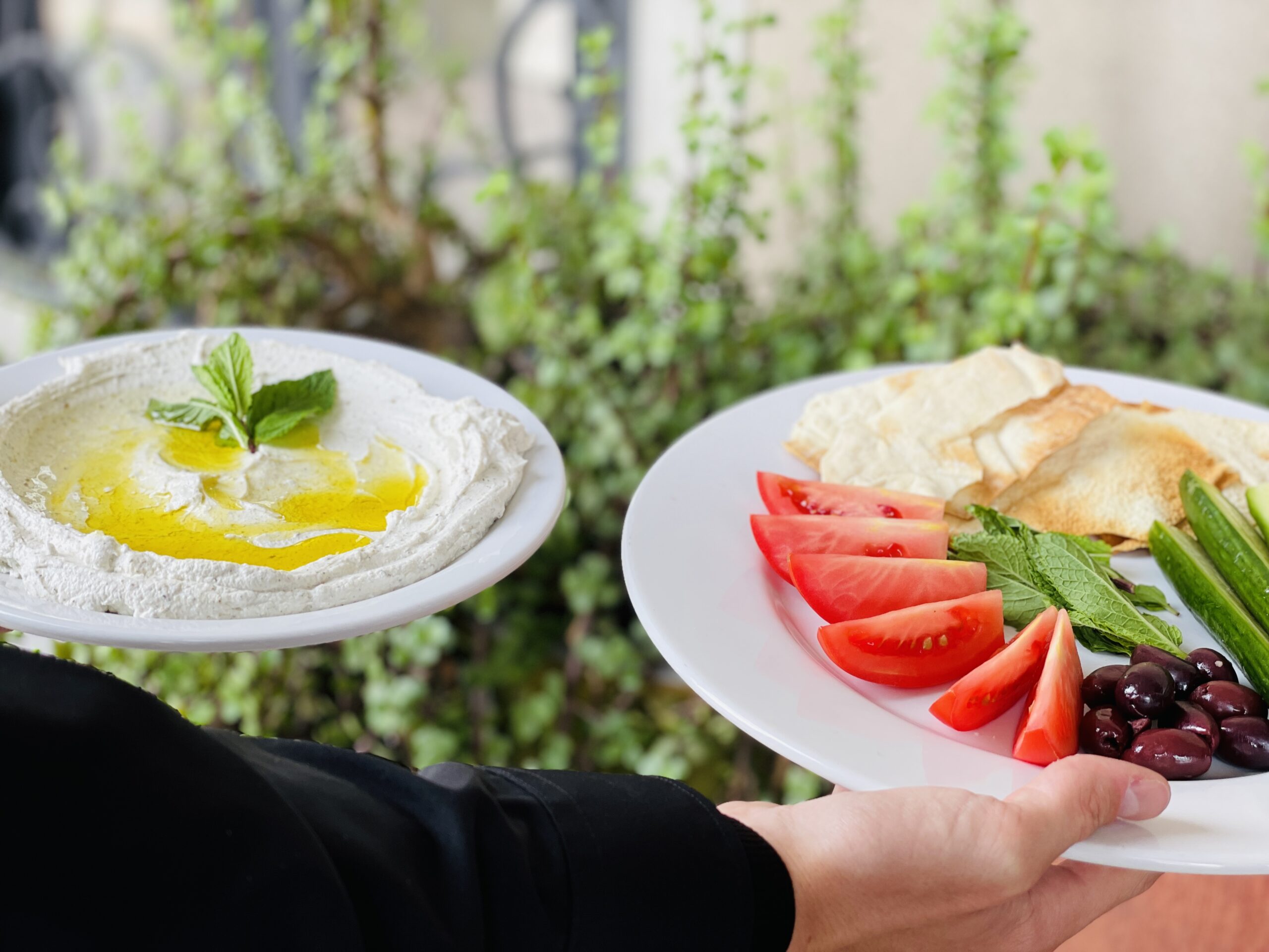 Pita Jungle is known for their variety of hummus and pita combos so the staff brought out a hummus trio for us to try. It consisted of the roasted red pepper, garlic, and tradition hummus garnished with garbanzo beans and a side of seasoned fried pita wedges and fresh cucumber slices for dipping.