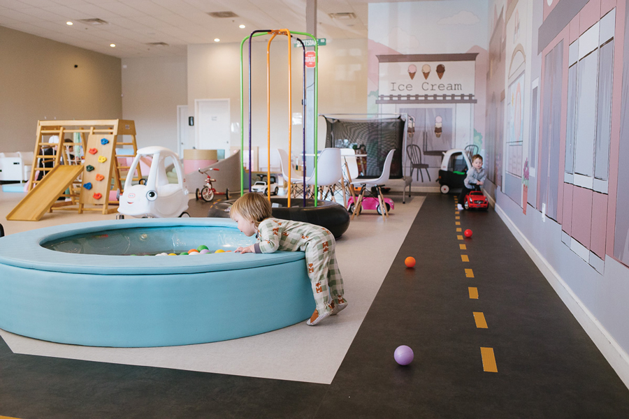 The indoor play space allows young children – from infancy to 6 years old – and their caregivers to engage in purposeful play where they can develop new skills, build relationships, and make meaningful memories.
