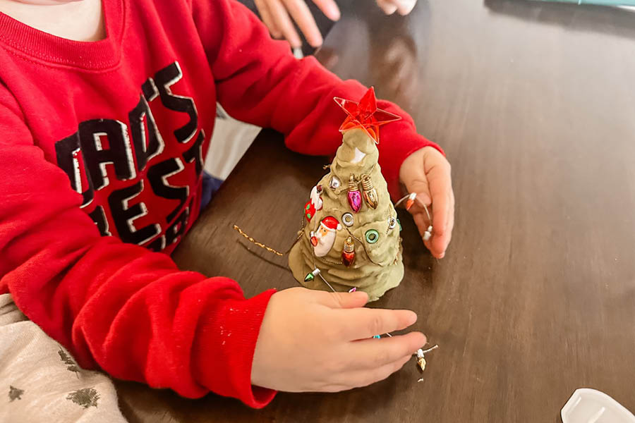 The kids (even my oldest at nearly 11!) had fun playing together and molding the dough to the tree and adding decorations. After my toddler had finished, the older two even pretended to make ‘broccoli’ pizza out of the dough. We brought it out again that night and our toddler played with it while we were waiting for dinner to finish! Since it comes in a little kit it would be a great addition to take on the go.