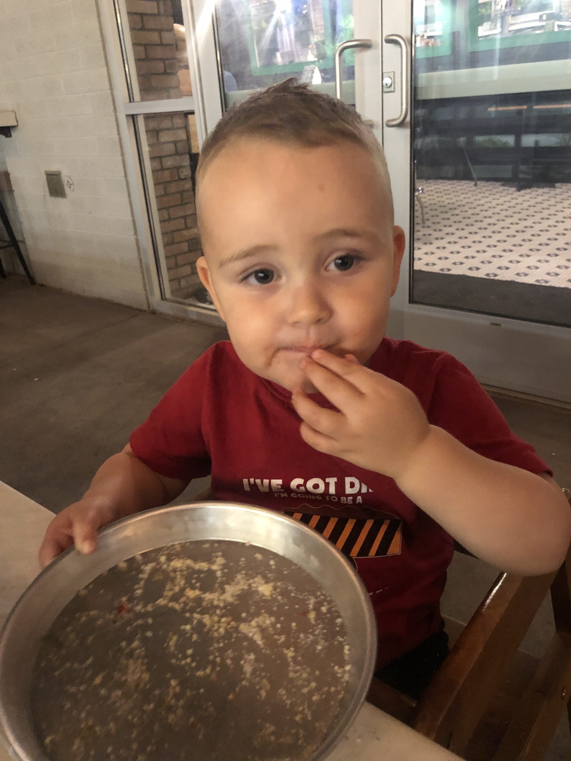 My 21-month-old is getting to be a lot easier to take out to eat these days. It helps that he loves to eat his “nummies,” but he especially loves a meal that includes cheese and carbs (a boy who takes after my own heart!), so I knew he’d be down to enjoy some delicious pizza.