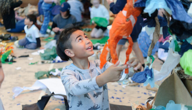 “Paper Planet” grows through this paper nature play as more families visit, and every session is truly unique as imaginations go wild. Children choose how they interact with the performers and with other children; some children find themselves absorbed in quiet making, and others prefer to play and explore. “Paper Planet” is child-led, deeply involving and highly sensory, and sure to delight the whole family. It is a universally accessible experience that families will find inspiring and utterly captivating.
