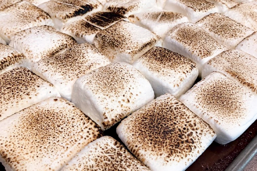 - Then sprinkle marshmallows on top of the frosting. Then grab a blow torch and toast those marshmallows.
