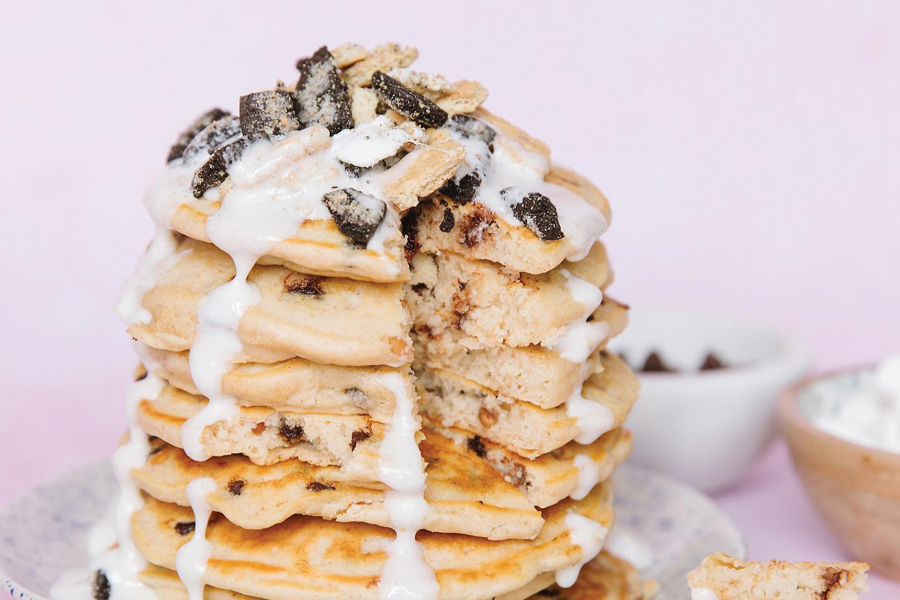 - Grab a few pancakes and put them on a plate. Grab some smashed Oreos and some graham crackers and place on top. Then pour marshmallow mixture on top. Enjoy!