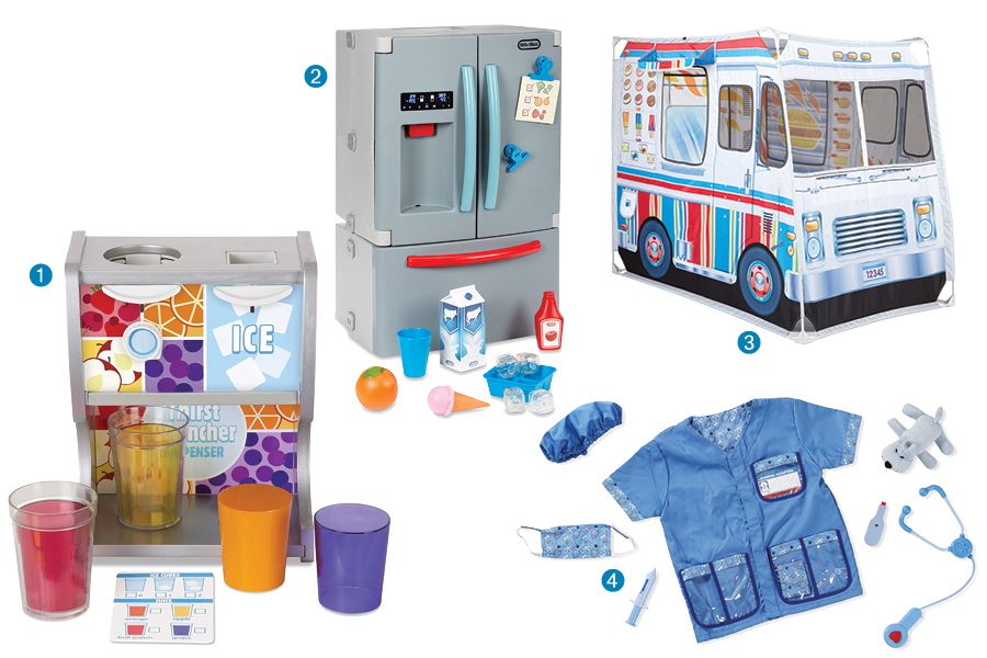 This allows kids to make their own juice cups, and fill them with plastic ice cubes with a push of a lever. Perfect add on to any play kitchen! $39.99. melissaanddoug.com