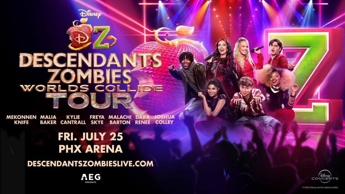 Join us for Disney Descendants/Zombies: Worlds Collide Tour, a one-of-a-kind interactive live concert experience, coming to PHX Arena on July 25! Joshua Colley from “Descendants: The Rise of Red” and Mekonnen Knife from “Zombies 4: Dawn of the Vampires” will join the previously announced talent line-up of Kylie Cantrall, Freya Skye, Malia Baker, Malachi Barton and Dara Reneé.