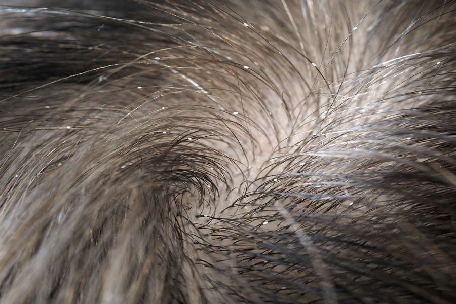 - What to look for: Itchy scalp, small white eggs (nits) stuck to hair close to the scalp, and occasionally live lice crawling.