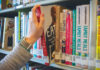 If bookshelves look too cluttered, insert a curtain rod with springs along the top, then add a lovely drape, sheet or piece of fabric to conceal the contents.
