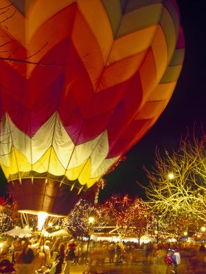 Hot-air balloons glow in the night sky at Murphy Park. This annual event called Glendale Glitter & Glows is puton by the city of Glendale, Arizona