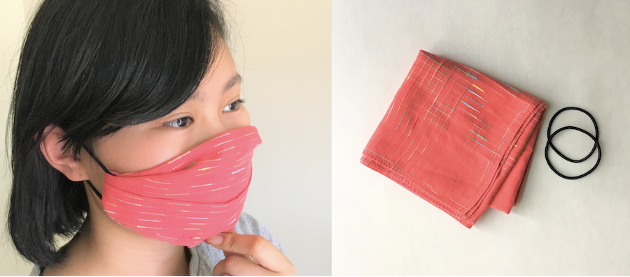The blog JapaneseCreations.com describes a no-sew pleated face mask made with a handkerchief and hair ties.