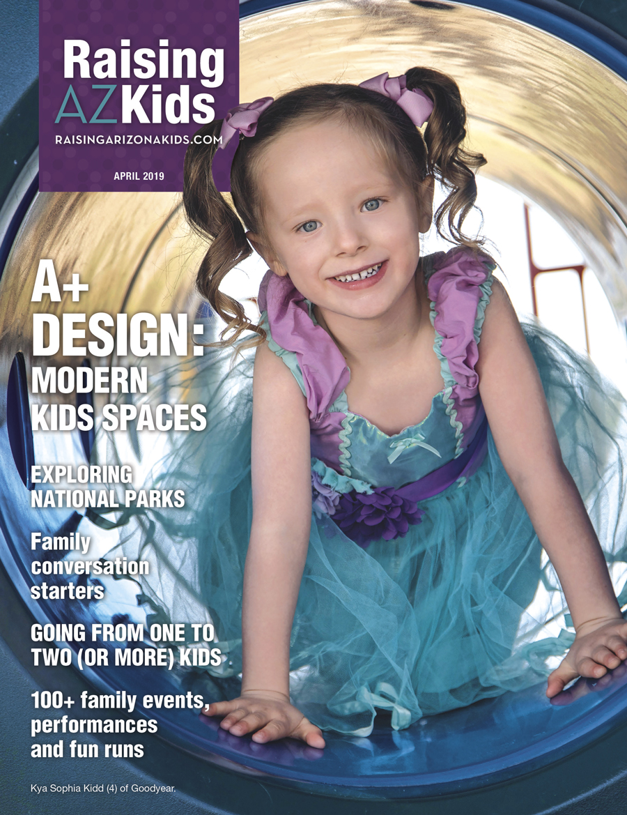 The April 2019 issue of Raising Arizona Kids features Chandler interior designer Jo Gick. A finalist on NBC’s recent crafting show “Making It,” Gick shares 10 tips for well-designed kids rooms filled with creativity, color and fun. Plus, National Park Week is April 20-28. Lisa Van Loo shares why her family loves exploring the beauty of national parks in the Southwest and beyond.