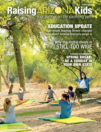 Raising Arizona Kids magazine’s digital-only March issue has an education focus as many students return to in-person classes. Arizona teachers weigh in on whether the pandemic has forever changed our schools. Common Sense Media explains why the digital divide is still too wide, and Expect More Arizona offers tips for getting kids ready to take spring AzM2 tests and explains why it’s important to assess what’s happened after a year of distance learning.
