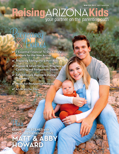 This issue of Raising Arizona Kids is full of valuable resources for pregnancies and babies. Find out how to map out a financial plan before your baby arrives, learn about virtual pregnancy coaching sessions, see how a postpartum doula can help your family, and check out The Nest Prep to get freezer-ready meals delivered right to your doorstep. Plus, popular social media couple Matt and Abby Howard open up about their life as new parents. Also in this winter issue, tips on savoring moments in a relationship and the power of reframing when co-parenting. In addition we have some cool gift items for mom and baby!